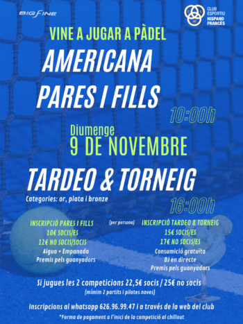 El proper diumenge 9 de novembre viurem un dia ple de pàdel, música i bon ambient al Club. Una jornada per gaudir en família i amb amics amb dues propostes imperdibles: